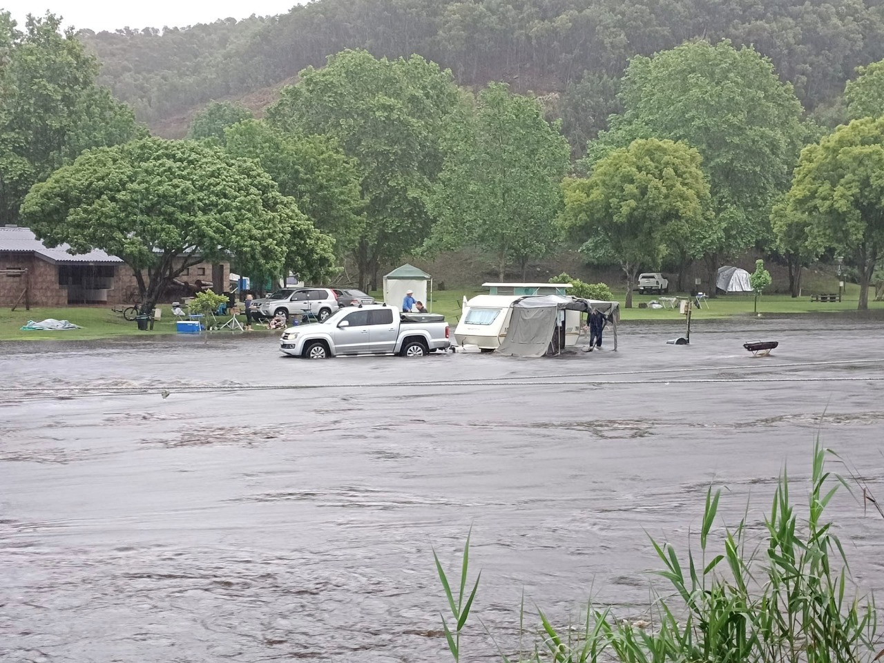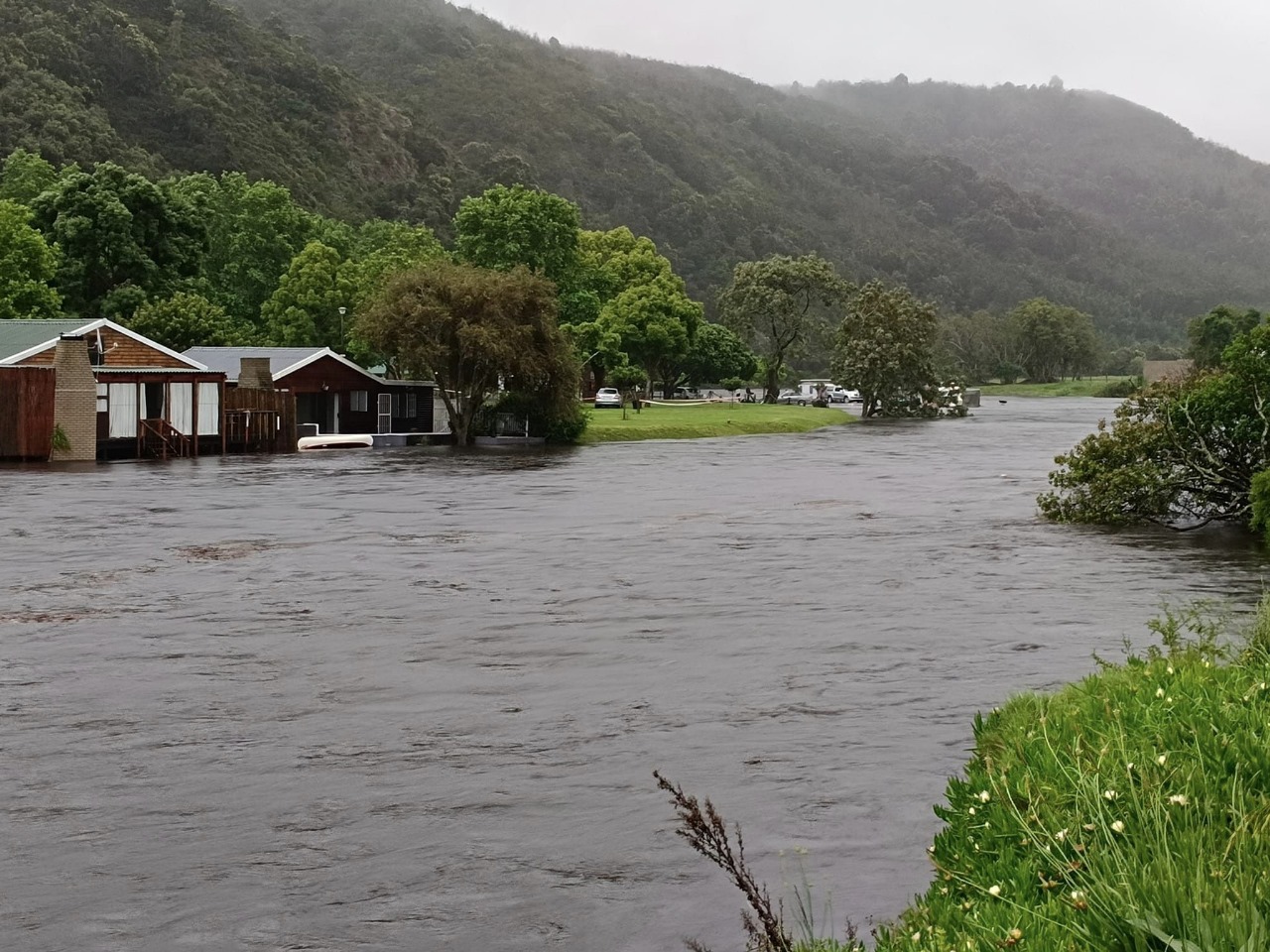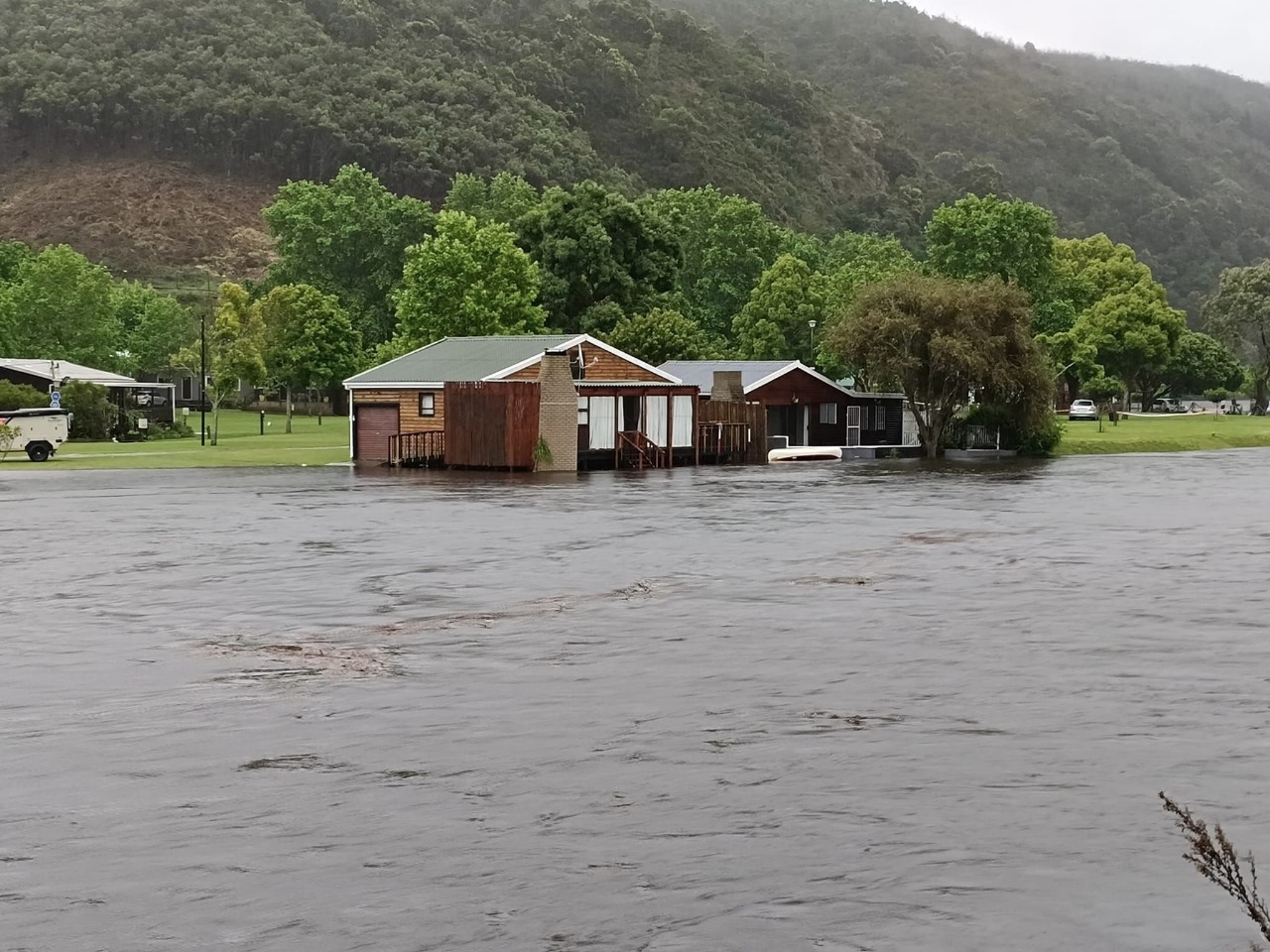 Pine Creek Caravan Park on the Great Brak River, outside Mossel Bay, was flooded. Many other places in Mossel Bay also experienced floods due to inclement weather. Photographs of the high water were posted on a social media site.