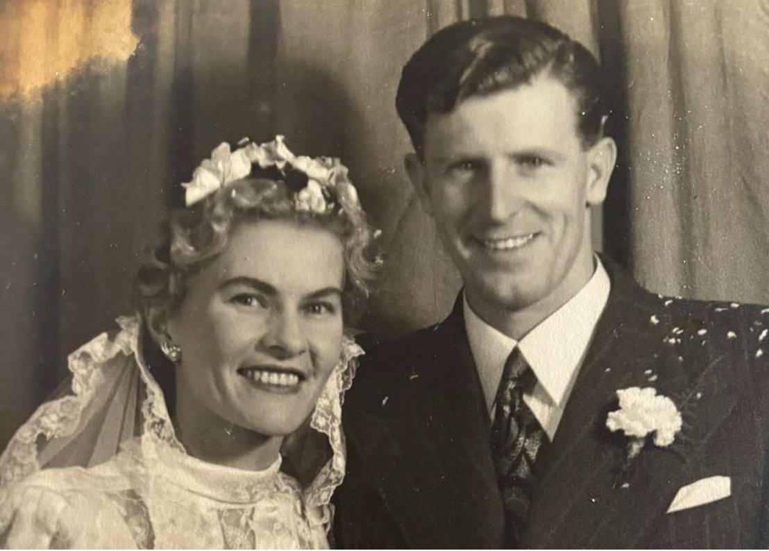 Susan and Peter Gerard Whitcome Johnson on their wedding day on 9 July 1949. Photo: Supplied