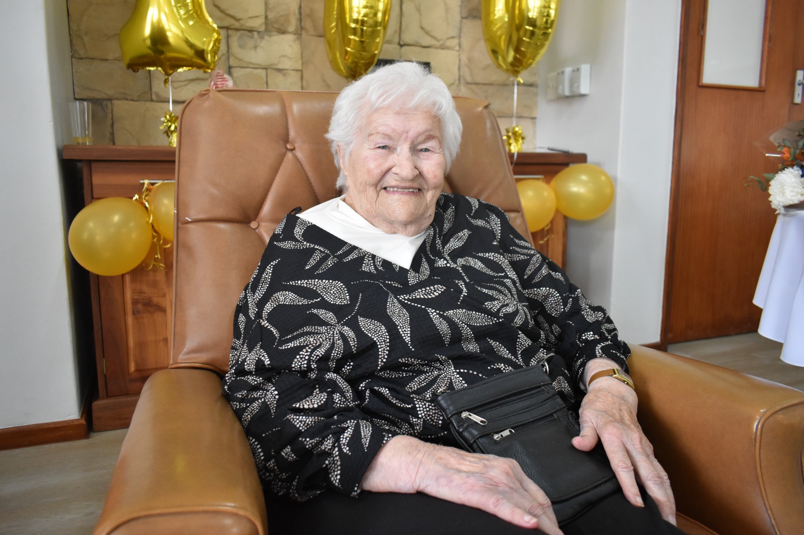 A birthday celebration was held at her home in Santos Haven the day before with family members, friends, staff and management and Mossel Bay Municipality's Mayor Dirk Kotzé.