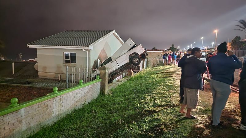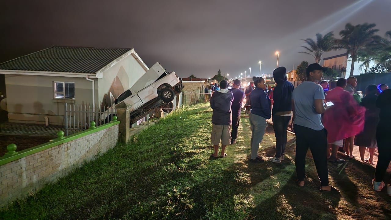 MOSSELBAAI NUUS - Mossel Bay Advertiser vryskutfotograaf, Julian Scholtz het gisteraand hierdie foto geneem van ‘n bakkie wat deur ‘n heining in D’Almeida gery het.