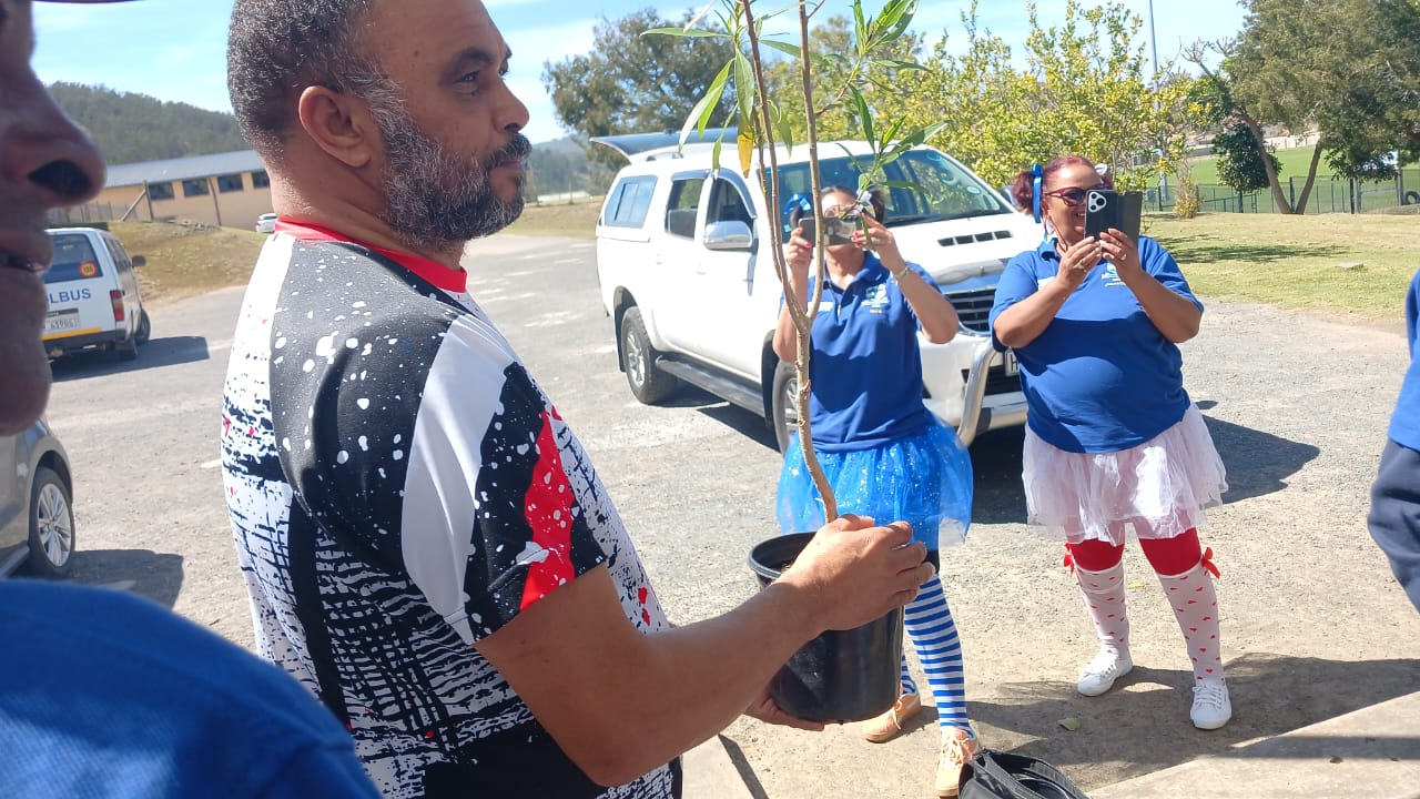 Groot-Brak Primêr se hoof, D.G. Rhoode, ontvang 'n boom by die 1985-matriekgroep.