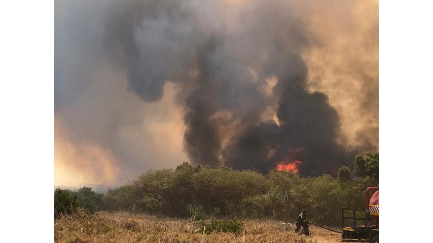DANABAAI NUUS - Daar is tans ’n veldbrand naby die Danabaai-ingang vanaf Louis Fourieweg wat rook in die area veroorsaak en die sluiting van die ingang genoodsaak het.