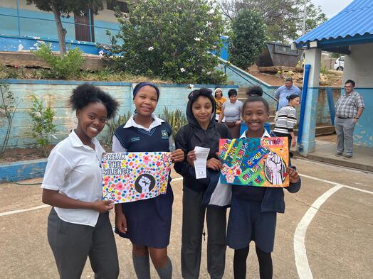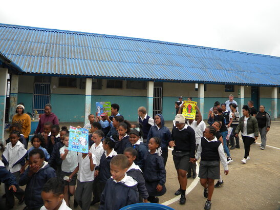 During the walk through the streets of the community, the learners were accompanied by their teachers, social workers of the ACVV, Genesis representatives and municipal traffic services, proudly carrying GBV-themed posters.