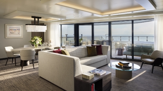 The seating area of the Owner's Suite, the most expensive accommodation of the Luminara yacht. Photo: Edgardo Contreras/The Ritz-Carlton Yacht Collection