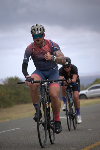 “After going over the first two waves, it felt like I was just going nowhere, but then I found my rhythm and stayed focused. Then it was out for the cycle. It was drizzling, but it was a nice cycle down, but coming back, that climb against the wind was quite challenging and my quads were really feeling it.”