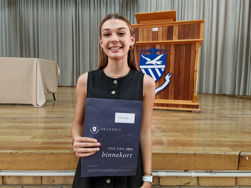 "Die wiskunde en die fisies [fisiese wetenskappe] kon miskien 'n bietjie hoër gewees het, maar vir hoe ek geskryf het, is ek baie tevrede," het sy Dinsdag 13 Januarie by Punt Hoër se matriekuitslagvrystelling gesê.