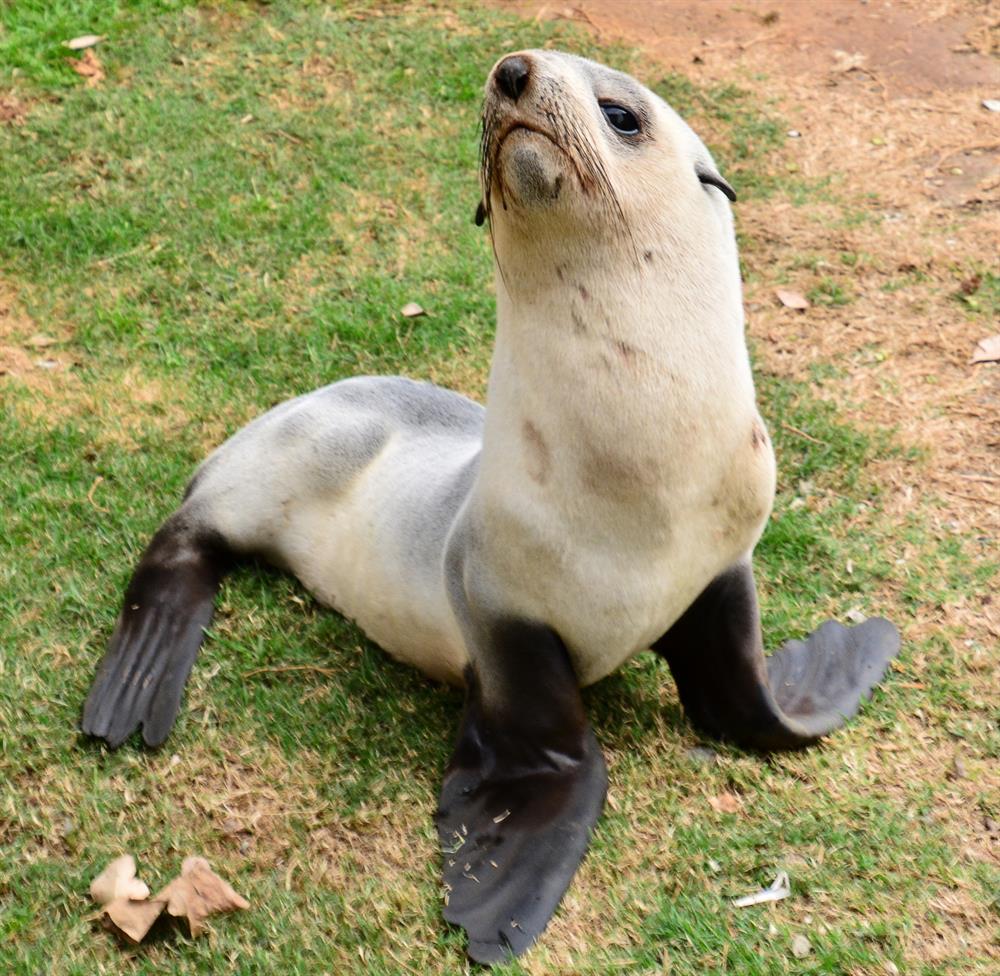 The Antarctic fur seal is one of nine species of eared seals. They are found on several sub-Antarctic islands, with the largest breeding colony at South Georgia - about 5 000km from Mossel Bay. There are also Antarctic fur seal populations on the South Shetland, South Orkney and South Sandwich islands, as well as Heard Island. Females and juveniles tend to be grey with a lighter belly. At birth the pups are black. Antarctic seals have slanted eyes and feed on moderate sized fish, squid and a lot of krill.