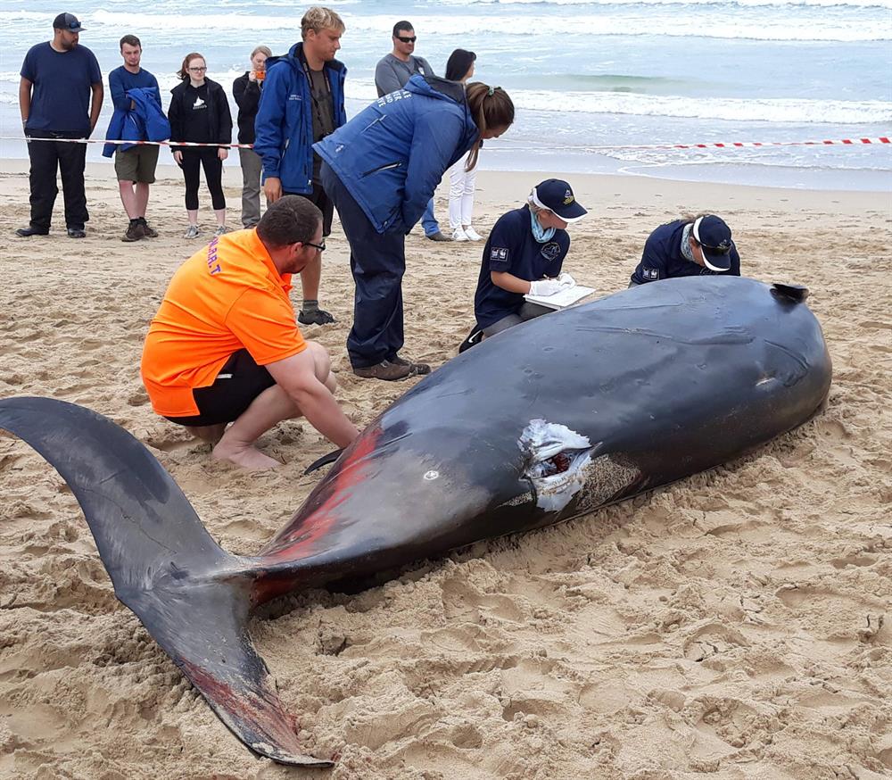 Cetacean specialist Dr Gwen Penry and members of the Plett Stranding Network did the scientific sampling and performed full necropsies on both animals. They were assisted by Sascha Dines and other interns from Oceans Research, while volunteers of S.M.A.R.T. kept the public informed.