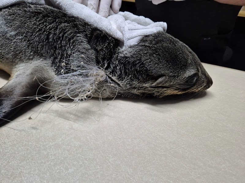 MOSSEL BAY NEWS - Some Stranded Marine Animal Rescue Team (Smart) volunteers rescued a yearling seal entangled in fishing line on the Second Beach in Dana Bay, Mossel Bay, yesterday morning, 22 August.