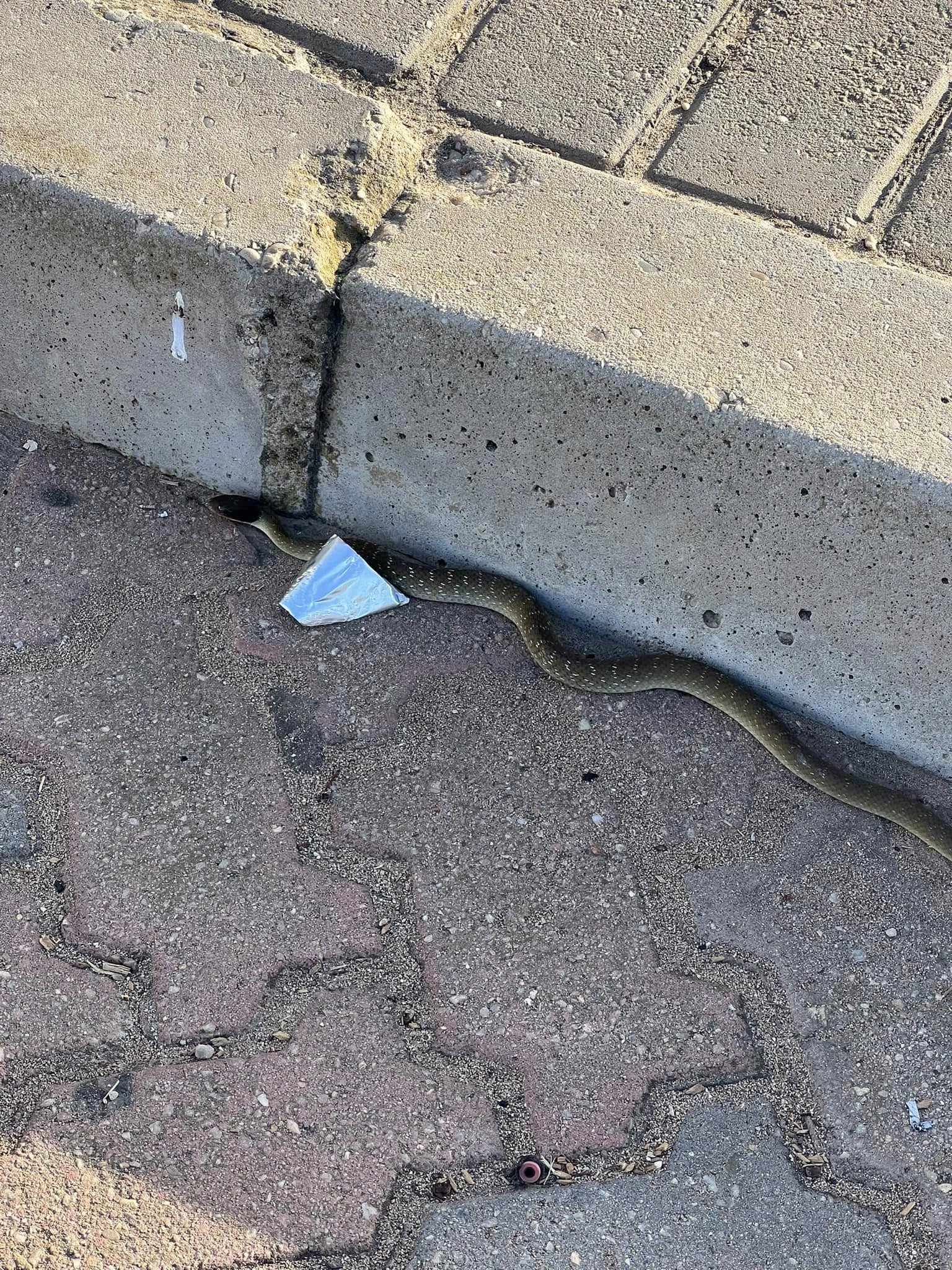 Die slang is opgemerk waar hy teen die sypaadjie gelê het.