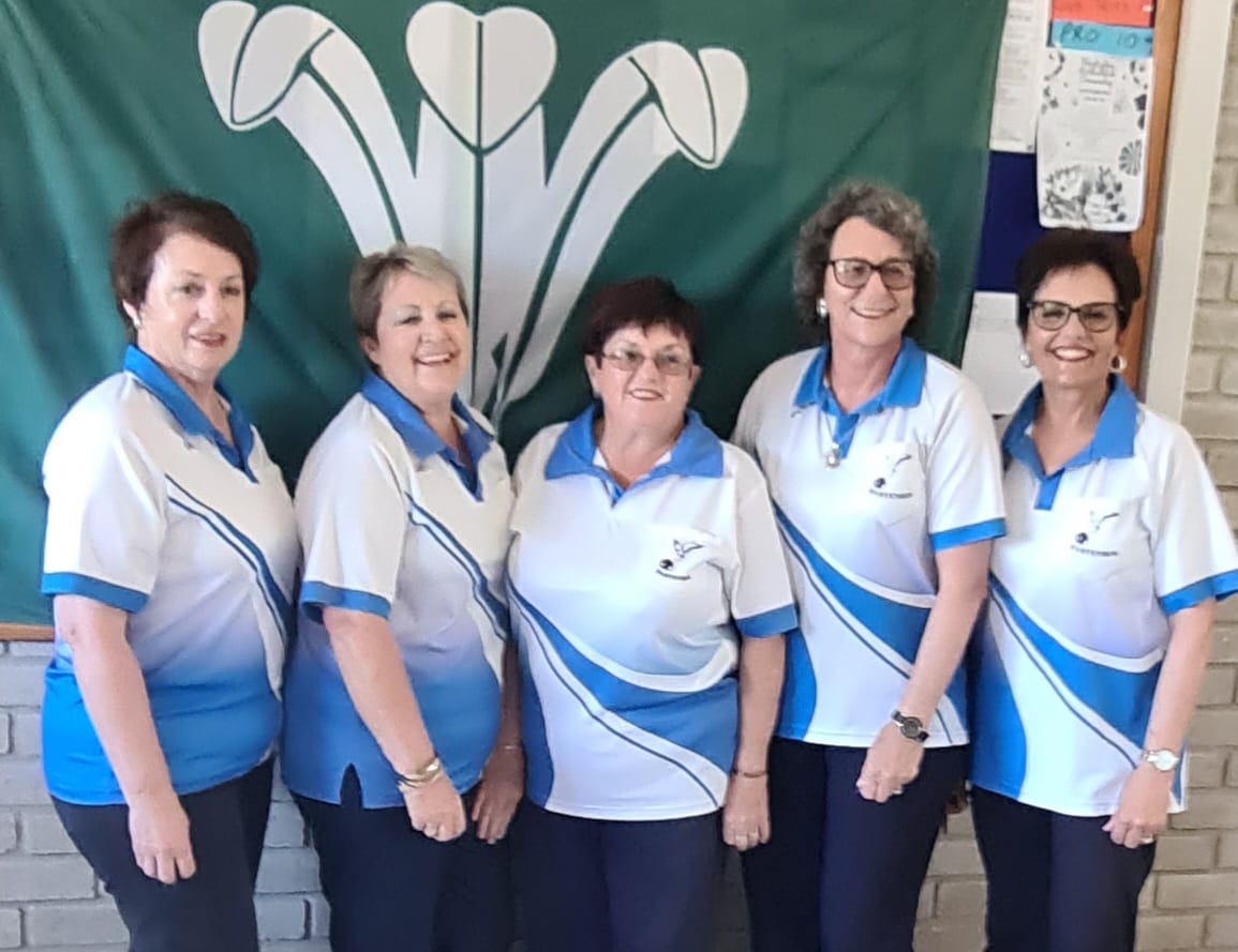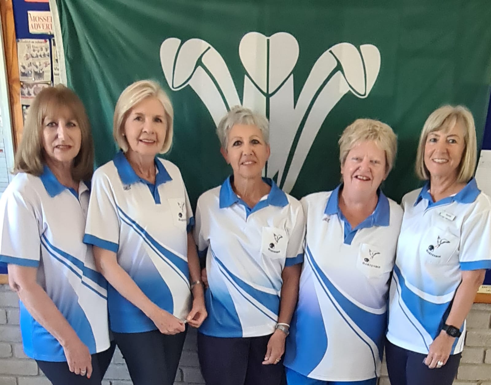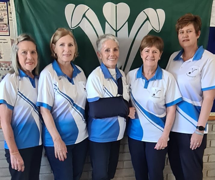 Hartenbos Rolbalklub se vroue het in die Eerste Liga 'n derde plek behaal. Hier is Lynette le Roux, Michelle Snyman, Elize Taute, Moyra Robbertse en Marina Pretorius.